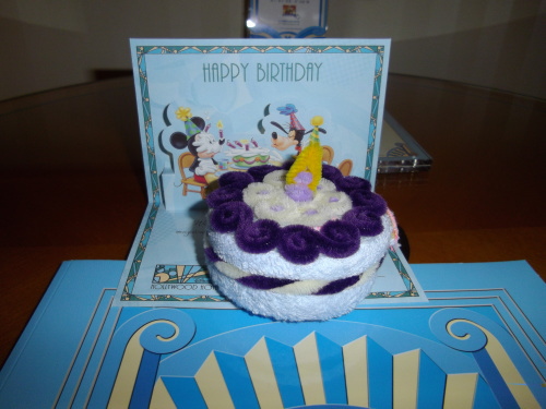 フロントでチェックイン時に渡されたバースデーキット?とともに。