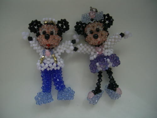 ミニーちゃんのスカートとミッキーちゃんのズボン、モトは同じビーズを使っているんです(汗)
