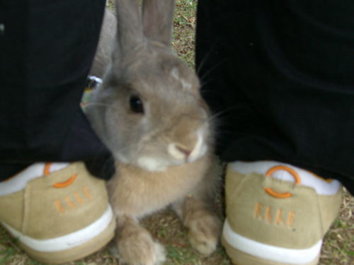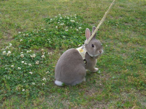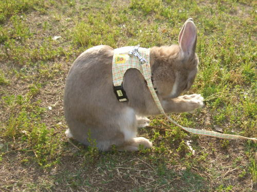 意外と怖がりで、人の足元でじーーっとするのが好きなんです。うさんぽ意味ないよ!