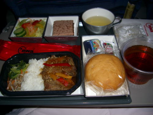 帰国時の機内食。