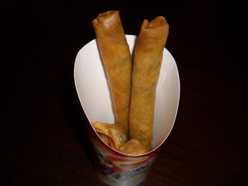持ち歩けそうな、可愛らしい春巻きと揚げ餃子のセット。