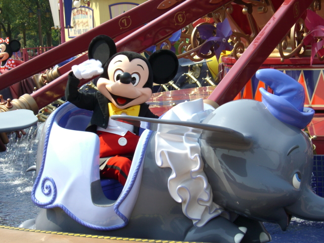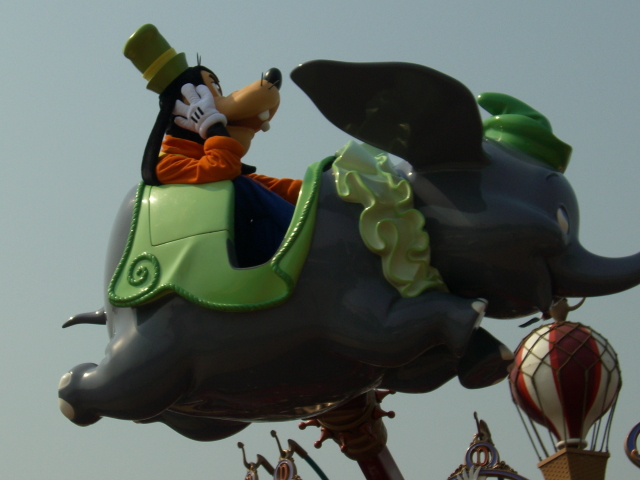 香港ではミッキーちゃんとミニーちゃん、グーフィーちゃんが毎朝、ダンボに乗っているようです。