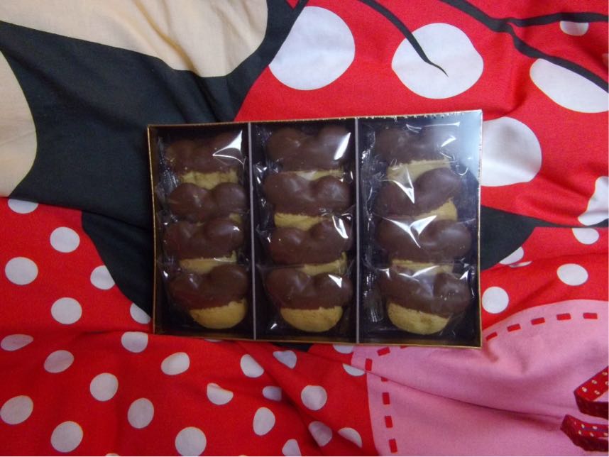 ミッキー型クッキーのチョコレートがディップされていてます。